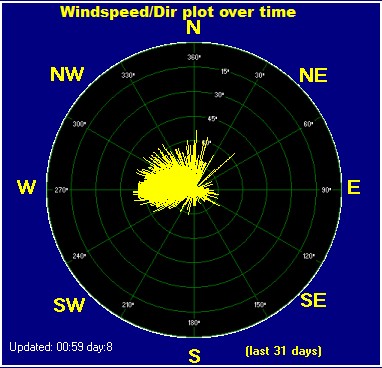 Maximum windspeed = 6.2 m/s from 269( W ) on day 02 at time 19:17