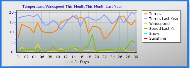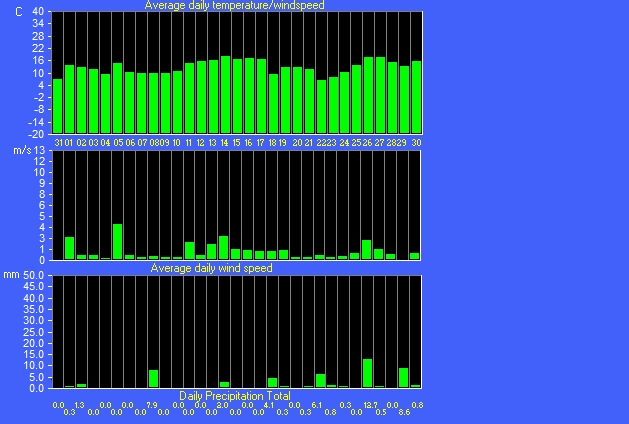 Maximum windspeed = 5.1 m/s from 267( W ) on day 31 at time 19:02